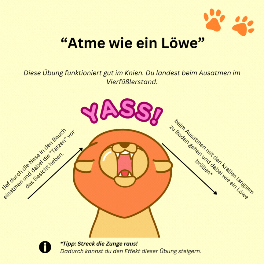 Vielleicht ist dein Kind auch schon einmal als kleiner Löwe durch die Wohnung getapst und hat laut gebrüllt. Viele Kinder lieben das und wenden dabei ganz unbewusst eine tolle Kompensationsstrategie an. Mit der Löwenatmung kann Energie entladen und Druck abgelassen werden. Sie eignet sich deshalb auch prima im Umgang mit Wut.
